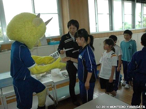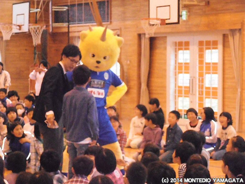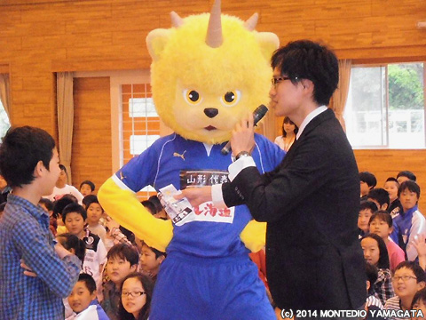 5月13日は楯岡小学校、5月15日は戸沢小学校を訪問。楯岡小学校では、大勢の児童のみんなの前で試合のPRをさせていただきました。児童のみんなは、朝から元気いっぱいです。