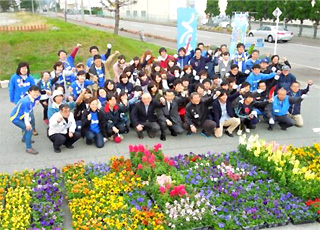 「モンテディオ山形」の存在は、山形県民の誇りだと、NDスタジアム山形に通じる「モンテロード」を花咲かロードにして、県内外のサポーター達に綺麗な山形を見ていただこうと、やまがた社会貢献基金事業「ネッツトヨタ山形」様から団体支援を頂いて、その熱い思いで花を植える活動を行っています。