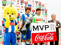 モンテディオ山形の勝利に貢献した選手が表彰されます。仙台コカ・コーラボトリング株式会社様よりコカ・コーラ製品1年分を贈呈いただきます。