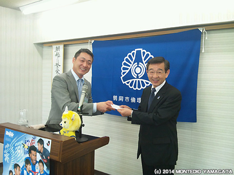 長さまからモンテディオ山形に対して「激励金」として15,000円を贈呈いただきました。