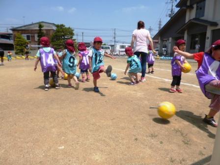 ドリブル、ドリブル!ボールを優しくさわってあげよう!