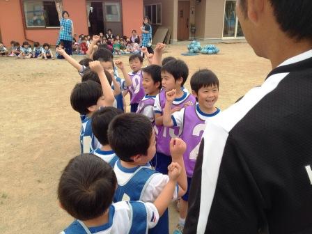 最後は、みんなでイエーイ!!また、サッカーしよう!!