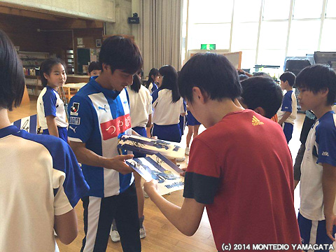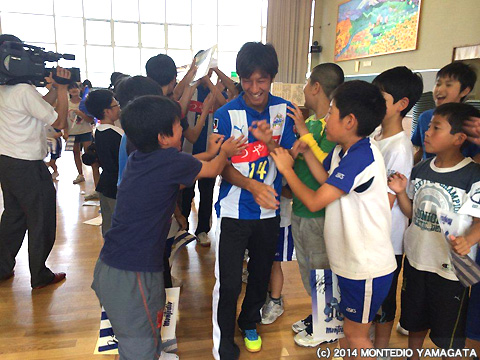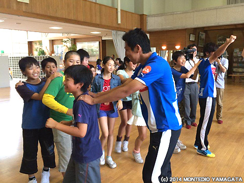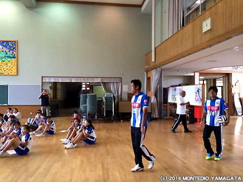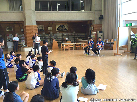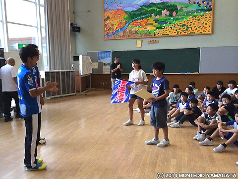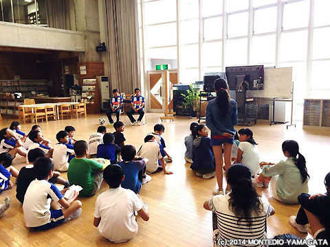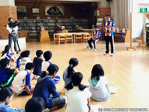 山形市立東沢小学校にNO.14比嘉厚平選手、NO.19秋葉勝選手が夢クラスで伺いました。