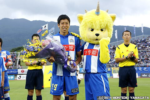 試合前、前節カマタマーレ讃岐戦でJリーグ通算350試合出場を果たした秋葉勝選手への表彰が行われます。