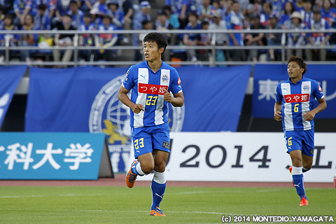 怪我から復帰し、前節は試合途中からの出場した伊東俊選手ですが、この試合ではいよいよスタメン復帰。相手ゴール近くでの巧みなプレーがチャンスにつながっています。