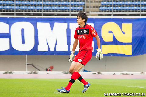 後半、モンテディオ山形ユースはトップチームの練習にも現在参加中でトップチームリーグ戦の第2種登録選手となっているGK1番摂津颯登選手をはじめ、守備陣もゴールを割らせず無失点で守り続けます。