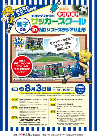 8月3日(日)大分トリニータ戦 東北電力スポーツ教室「モンテディオ山形 親子de サッカースクール」参加者募集のお知らせ