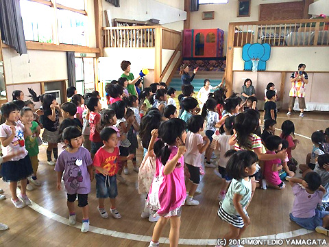 はじめに、やまべ幼稚園での様子をレポートします。みんな、ディーオが登場するのを今か今かと待ちきれない様子です。