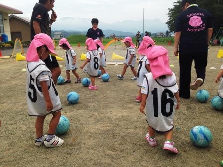 みんなでドリブルお散歩です。遠くに行かないようにね!