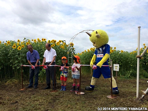 今年もこの季節がやってきました。ディーオが天童市梨ノ木にある「ひまわり迷路」のオープニングへいってきました。ひまわり迷路は干布地域づくり委員会のみなさんが丹精を込めて制作しているもので、毎年7月下旬ごろから8月中旬ごろまで一般公開されています。