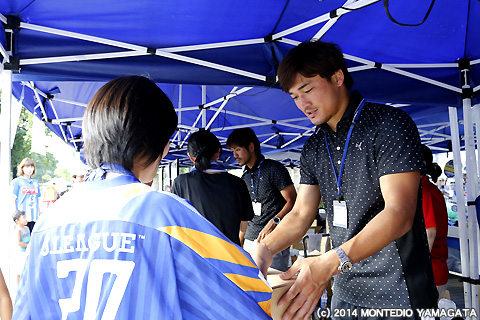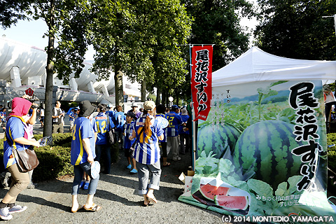 この試合のマッチスポンサー「山形食品」様からは、選手がプリントされた特製うちわをプレゼント頂いた他、モンテディオ山形サポート飲料「「12(トゥエルブ)」ブースでは購入者に選手サイン入り色紙等が当たる抽選会が行われます。