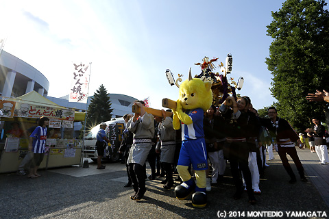 中央広場では「スタジアムで夏祭り!」と銘打ち、ディーオも加わって天童木遣 天聲會による木遣、干布神輿越王會による神輿の練り歩きが行われます。