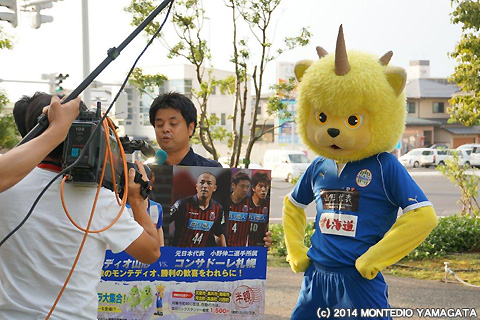 ディーオが出演させていただいたのは、YBCテレビさんの「ピヨ卵」、番組内の街角伝言板のコーナーです。8月17日の札幌戦のPRのために出演させていただきました。