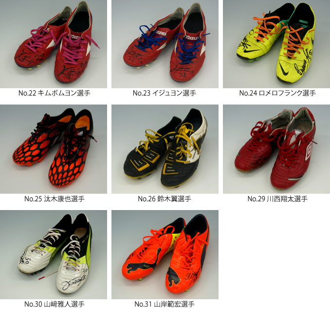 オークション品は「中学生以下の方対象」のオークションと、「年齢制限のないオークション」の2つに分けさせていただきます。どの選手の品物が、どの試合でどのオークションに出品されるかは当日の発表となります。また、オークションは100円単位とさせていただきます。