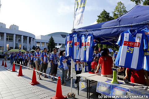 試合前の中央広場、モンテディオ山形カードフェスタそしてユニフォームフェスタという人気イベントが行われ、また選手会によるチャリティーオークションも行われたためいつも以上の賑わいを見せます。