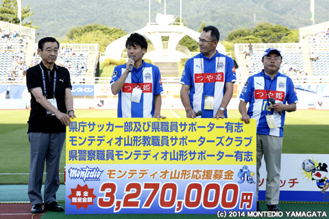 また県庁サッカー部及び県職員サポーター有志、モンテディオ山形教職員サポータークラブ、県警察職員モンテディオ山形サポーター有志から応援募金を贈呈頂きました。