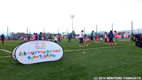 まずは、米沢市営人工芝サッカーフィールドで行われた、JFA・キリン レディース/ガールズサッカーフェスティバルへ参加してきた様子から。まずは、会場に到着するなり、みんなと記念撮影を始めます。