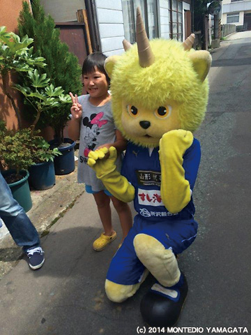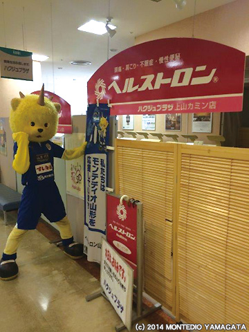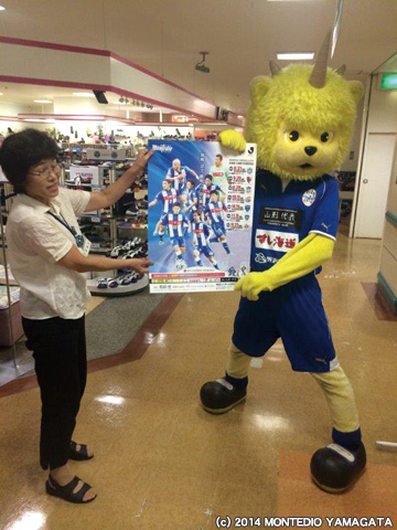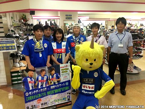ディーオは上山モンテディオサポーターズクラブのみなさんと、地域の方とふれあいながら、たくさんのお店を回らせていただきました。
