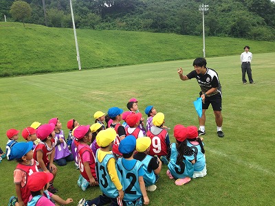 ふれあいフィールドはモンテディオ山形が地域貢献活動の一環として幼稚園・保育園、小学校を対象に、アカデミーコーチを派遣し実施しているサッカー教室です。
