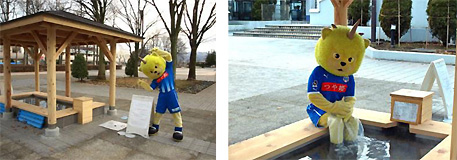 この足湯は公園内に設置されている荒谷温泉から引いたもので無色透明、冷え症や疲労回復・慢性消化器病など様々な疾患及び症状に効果があります。場所は、ND ソフトスタジアム山形の目の前。もちろん無料でご利用できます。
