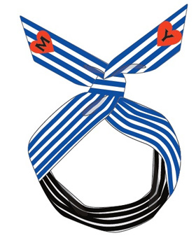 青×白のモンテカラーと黒×白のシックなカラーのリバーシブル。ハートの中の「M」「Y」で、さりげなくモンテディオ山形をアピールしてください。