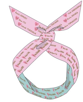 さわやかなピンクとミントグリーンをベースに選手全員の名前と背番号を入れました。選手の名前入りカチューシャを巻いて、熱く応援しましょう!