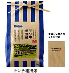 商品名称:モンテ棚田米(2kg)販売価格:1,600円(税込) ※山形県オリジナル低アミロース米「里のゆき」。水を控えた方が美味しく炊けるという特性をもちますが、冷めても硬くなりにくく、お弁当やおにぎりなどにはうってつけのお米です。 |