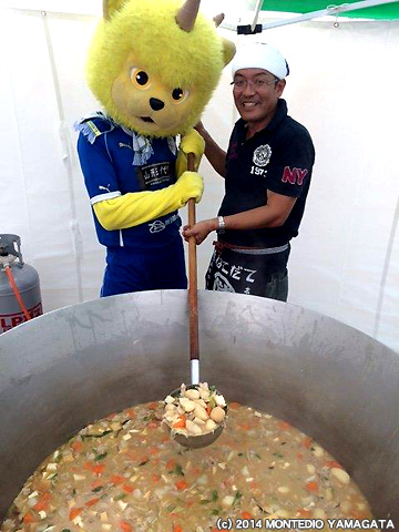 この美味しそうな芋煮、なんと一杯100円で振る舞われていました。ディーオも美味しくいただきましたよ。