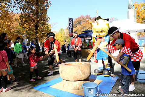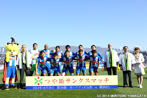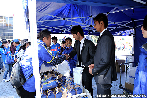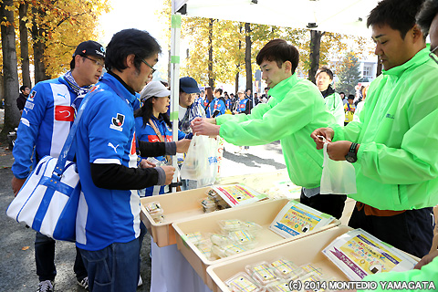 この試合は胸スポンサーとして長年チームを支えて頂いてる山形県・山形つや姫ブランド化戦略推進本部とJAグループ山形様による「つや姫サンクスマッチ」として開催されました。ディーオも参加した餅つきでこねた餅を入れた東日本大震災支援募金者へのきのこの雑煮のふるまいや、