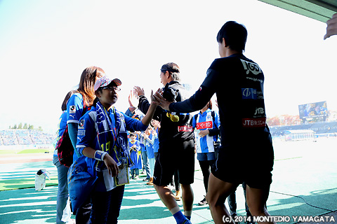 試合後選手たちを迎えたのは大きな「ヤマガタディオ!」コールでした。残り4試合となり順位も7位となってしまいましたが、最後の最後まで諦めなければ必ずJ1昇格のチャンスは来るはずです。