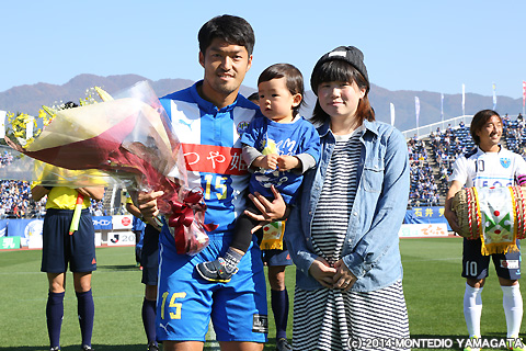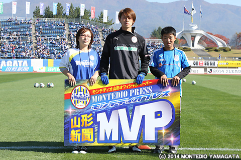 ピッチサイドでは9月の「山新月間MVP賞」の表彰が行われます。選ばれたのは9月のJ2リーグ戦で2ゴールを決め、チーム浮上のきっかけを作った川西翔太選手です。