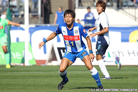 松岡亮輔選手はこれがモンテディオ山形移籍後初ゴール。ボランチながらよくシュートチャンスに絡んでいたものの得点とはなっていなかっただけに、サポーターからも大きな声援が送られます。