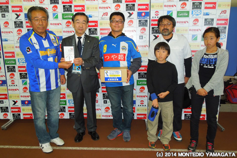 本日10/26、山形市の飯塚町商店会(加藤良夫会長)様よりリボンマグネット応援募金11,000円と8月13に行われた飯塚町盆踊り大会での出店売上げ金の一部10,000円を弊社髙橋節社長に贈呈いただきました。
