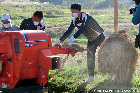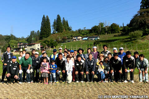 これまでもリリースやレポートで紹介させて頂いておりますが、棚田再生事業へのモンテディオ山形の協力は4年目。耕作面積は2011年40アールだった耕作地が、2014年は1.4ヘクタールと年々増加し、日本の失われつつあった素晴らしい風景、そして農耕文化がここ大蕨棚田では見事に再生しつつあります。