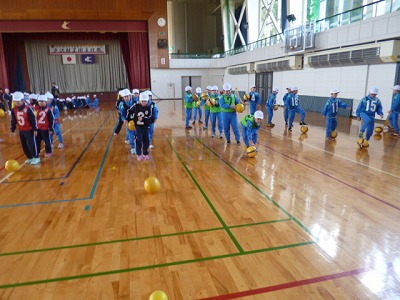 前日の雨の影響でグランドコンディションが悪く戸沢村中央公民館で活動を行いました。