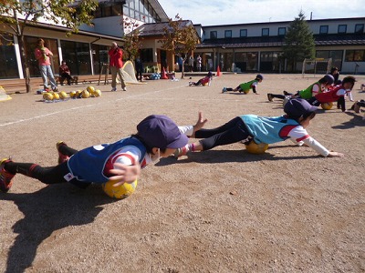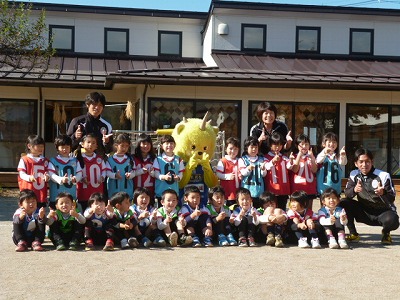 ふれあいフィールドはモンテディオ山形が地域貢献活動の一環として幼稚園・保育園、小学校を対象に、アカデミーコーチを派遣し実施しているサッカー教室です。