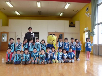 最後はみんなで記念写真を撮ってサッカー教室は終了です。