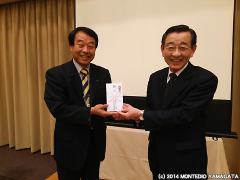 受講者の方より「モンテディオ山形が活性化するには、資金集めと地元出身選手をもっと入れるべき」とのありがたいアドバイスをちょうだいしました。また、応援募金50,000円もちょうだいし激励いただきました。