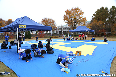 「もんてらんど」では、GO!PLAYOFF!GO!J1!センターサークルフラッグへサポーターの皆さんが次々にメッセージを書き込みます。残りホーム2試合、ピッチの真ん中にモンテディオ山形を支える企業とサポーターのメッセージが掲示されます。