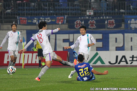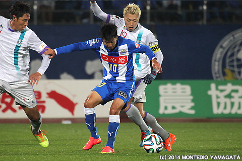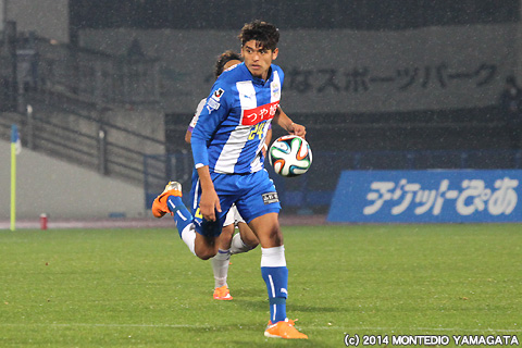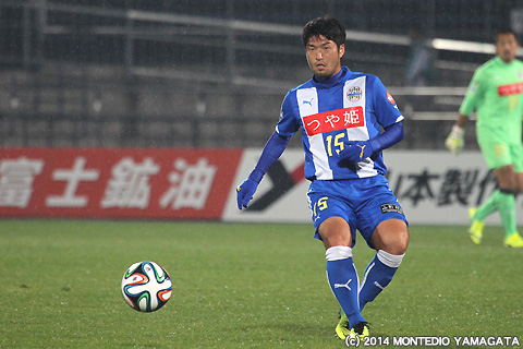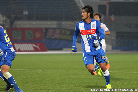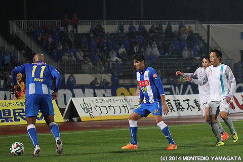 ここまでJ2リーグ戦に唯一全試合出場している宮阪政樹選手はこの試合でもボランチとしてチームをハンドリング。得意の直接フリーキックを狙うチャンスは有りませんでしたが、正確なロングボールで幅広くピッチを使います。