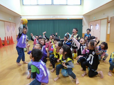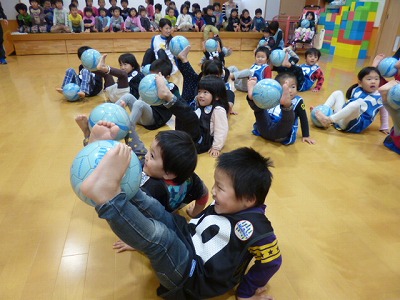3組はボールを手で扱うのから始まりました。