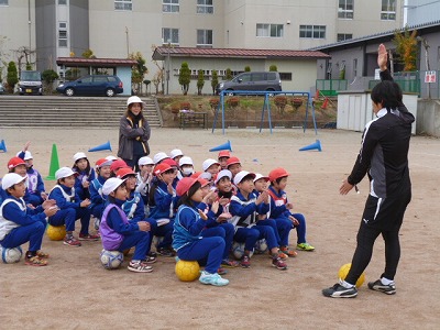 ふれあいフィールドはモンテディオ山形が地域貢献活動の一環として幼稚園・保育園、小学校を対象に、アカデミーコーチを派遣し実施しているサッカー教室です。
