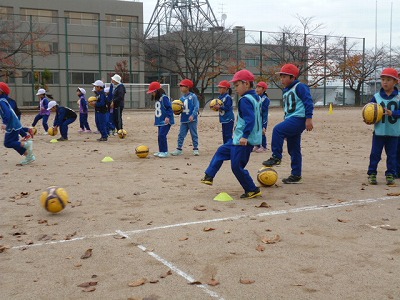 早速各クラス毎にサッカー教室スタートです。