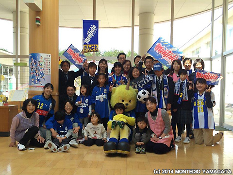 モンテディオ山形では関係者のみなさまのご協力をいただき、栄養士の先生の協力のもとで行われる「食」についての授業や、学校給食センターや栄養士の方々と一緒に、給食の時間にモンテディオ山形応援給食という献立を実施し、子供たちが選手に食べさせたいメニューを献立にして、食と栄養について学ぶ活動を県内全域で行っています。
