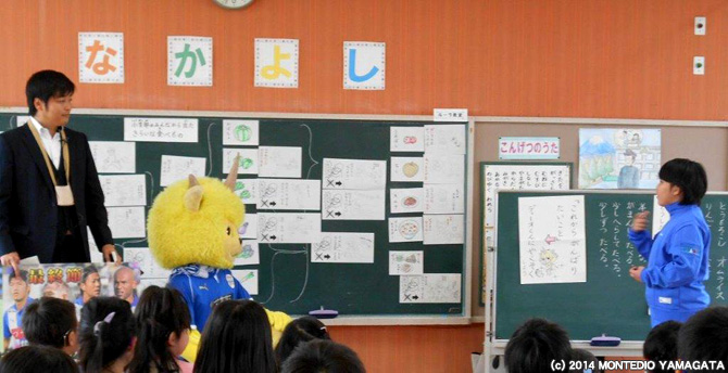 今回は11月12日(水)に山形聾学校でおこなわれた食育活動についてレポートいたします。食育活動とは、栄養士の先生の協力の下、おこなわれる「食」について授業や、学校給食センターや栄養士の方々と一緒に、給食の時間にモンテディオ山形応援給食という献立を実施し、子供たちが選手に食べさせたいメニューを献立にして、食と栄養について学ぶ活動を県内全域で行っております。