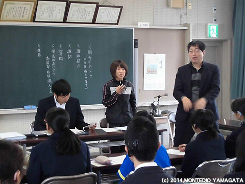 こちらは、一緒に食育活動へ参加した(公社)山形県スポーツ振興21世紀協会女子駅伝チームの田中幸が自身の体験を交えスポーツと食事について語っています。