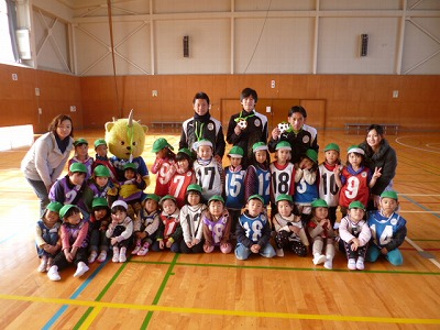 ふれあいフィールドはモンテディオ山形が地域貢献活動の一環として幼稚園・保育園、小学校を対象に、アカデミーコーチを派遣し実施しているサッカー教室です。