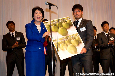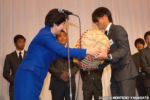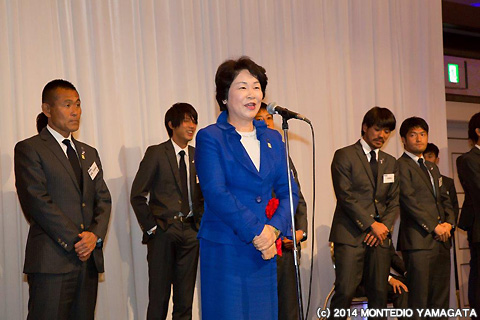 山形県知事の吉村美栄子さまよりモンテディオ山形へ激励の言葉をいただきました。