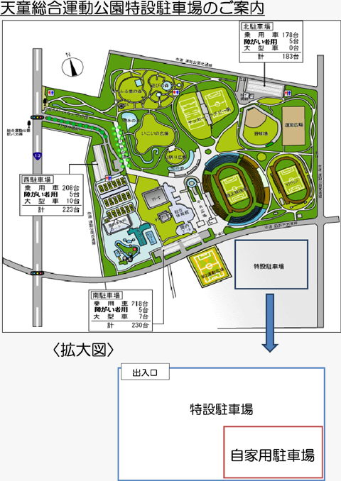 (第三乗降地)天童総合運動公園特設駐車場※案内図リンク(集合7:00/出発7:20)→