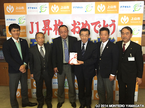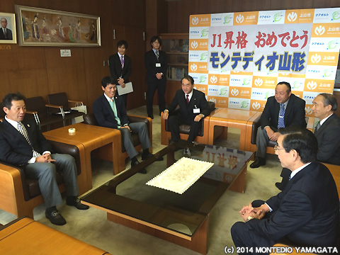 横戸長兵衛市長からは、「山形の名前をモンテディオが一番売ってるんじゃないですか?」とお褒めの言葉をいただきました。
